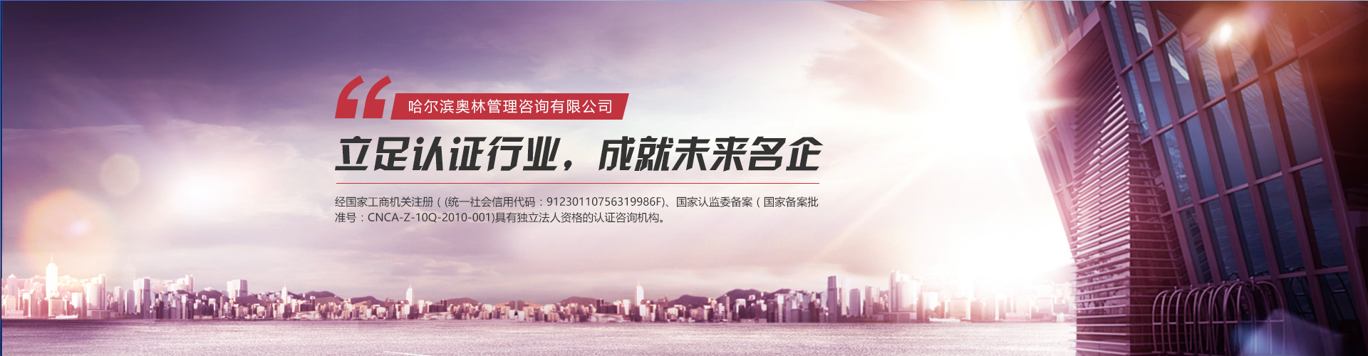 奧林公司是黑龍江省通過國家的再度資格審查,在東三省擁有自己正規(guī)辦公場所并具有國家注冊資質(zhì)(六標(biāo)咨詢資質(zhì):ISO9001/ISO14001/ISO45001/HACCP/有機認證/TS16949,國家注冊備案時間:2010年1月19日-2014年11月18日)的認證咨詢公司。奧林公司是咨詢業(yè)內(nèi)專家資質(zhì)全和專業(yè)范圍完整的國家注冊備案時間長的黑龍江大型咨詢機構(gòu)。奧林公司的理念是:做企業(yè)與做人一樣,追求真誠,追求永遠。